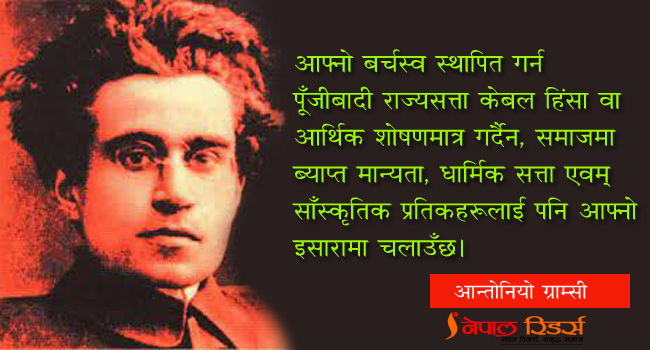 ग्राम्सीको चिन्तनको मुख्य बिन्दु नै यही थियो। उनको निस्कर्ष थियो, ‘पूँजीबादी राज्यसत्ता आफ्नो बर्चस्व स्थापित गर्नका लागि केबल हिंसा वा आर्थिक शोषणमात्र गर्दैन, समाजमा ब्याप्त मान्यता, धार्मिक सत्ता एवम् साँस्कृतिक प्रतिकहरुलाई पनि आफ्नो इसारामा चलाउँछ। परिणमस्वरूप नोकरशाही र दासत्वले श्रमजिबिको तर्कवुद्धिमा गहिरो प्रभाव पार्दछ। जसले समाजमा, बिशेषगरी श्रमजीबि बर्गहरूलाई के लाग्छ भने ‘मजदुर बर्ग र शासकबर्गको हित र न्याय अल हुन्छ’ भन्ने भ्रम पैदा गराउछ। त्यस्तो त अवश्य पनि हुँदैन। यस धर्तिमा जन्मेका प्रत्येक मान्छेले उत्तिकै अधिकार र न्याय पाउनुपर्ने हो।