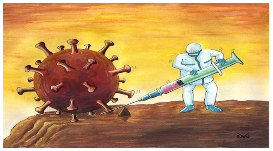 भ्याक्सिन भन्नु व्यापक खेलकूद चलिरहेको गतिशील मैदानको एउटा मात्रै पाटोजस्तै हो। सुरक्षाको एउटा पत्र भनौं न। पानी परेको बेला छाताजस्तो। छाताको काम भिज्नबाट रोक्ने हो, तर छाता ओढेको मानिस भिज्दै भिज्दैन भन्न सकिन्न। हो, सिमसिमे पानी परिरहेको बेला भाग्यमानी मानिसले यो ओढेको छ भने चाहिँ पक्कै भिज्नबाट रोक्छ। तर, बेतोडको आँधिबेहरीसहित वर्षा भइरहेको छ भने त्यो बबुरो छाताले कतिसम्म जोगाउँछ भन्ने कुरो मुख्य हो।