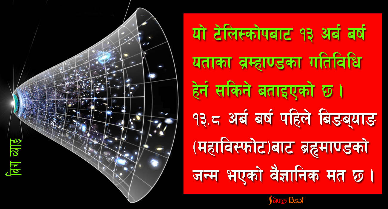 संसारको अहिलेसम्मकै सबैभन्दा धेरै क्षमता भएको जेम्स वेब स्पेस टेलिस्कोप डिसेम्बर २५, २०२१ मा अमेरिकाको अन्तरिक्ष अनुसन्धानसम्बन्धी संस्था ‘नासा’ले अन्तरिक्षमा प्रक्षेपण गरेको छ। यसको प्रयोगबाट हामीले एक ढंगबाट ‘टाइम ट्राभल’ गर्न सकिने बताइन्छ। यो योजना सफल भएको खण्डमा करोडौं वर्षअघि नै हामी पुग्ने भन्ने त होइन, तर ब्रम्हाण्डको इतिहासमा भएका अनेकौं गतिविधिहरूको झलक हेर्न सम्भव हुनेछ, हामी जन्मनुअघि पृथ्वी र अन्य ग्रहहरूमा समेत भएका गतिविधिहरूको जानकारी लिन सकिनेछ। त्यो पनि केबल ४–५ वर्षको कुरा होइन, करोडौं बर्षअघि भएका ब्रम्हाण्डीय गतिविधी हेर्न पाइनेछ। यसको प्रयोगमार्फत १३ अर्ब बर्षभन्दा पनि पहिलेसम्मका गतिविधि हेर्न सकिने बताइएको छ। वैज्ञानिकहरूका अनुसार १३.८ अर्ब बर्ष पहिले बिग ब्याङ (महाबिस्फोट)बाट ब्रह्माण्डको सुरुवात भएको हो।
