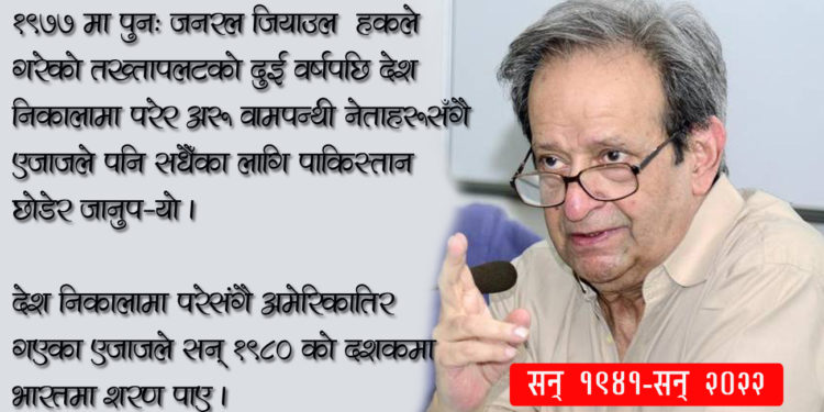 सन् १९७० को दशकमा एजाज पुनः पाकिस्तान फर्के । त्यस क्रममा उनी एकातिर पाकिस्तानमा फिरोज अहमदद्वारा प्रकाशन गर्न लागेको पत्रिका ‘पाकिस्तान फोरम’ सित जोडिएर त्यहीँ उनले न्युयोर्कबाट छापिने प्रसिद्ध पत्रिका ‘मन्थली रिभ्यू’ मा पनि लेख लेख्न सुरु गरे । तर, १९७७ मा पुनः जनरल जियाउल हकले गरेको तख्तापलट (सैनिक विद्रोह) को दुई वर्षपछि देश निकालामा परेर अरू वामपन्थी नेताहरूसँगै एजाजले पनि सधैँका लागि पाकिस्तान छोडेर जानुप-यो । देश निकालामा परी संरा अमेरिकातिर गएका एजाजले १९८० को दशकमा भारतमा शरण पाए । उनी भारतमा तीन दशकभन्दा बढी समयसम्म रहे र लेखन तथा प्राध्यापनसँगै वामपन्थी आन्दोलनसित जोडिएर सक्रिय रहे । उनी लामो समयसम्म नेहरू मेमोरियल म्युजियम एन्ड लाइब्रेरीमा अनुन्धानकर्ता रहे, त्यहाँ उनी उक्त संस्थाका तत्कालीन निर्देशक रविन्दर कुमारसित आत्मीय सम्बन्धमा रहे ।