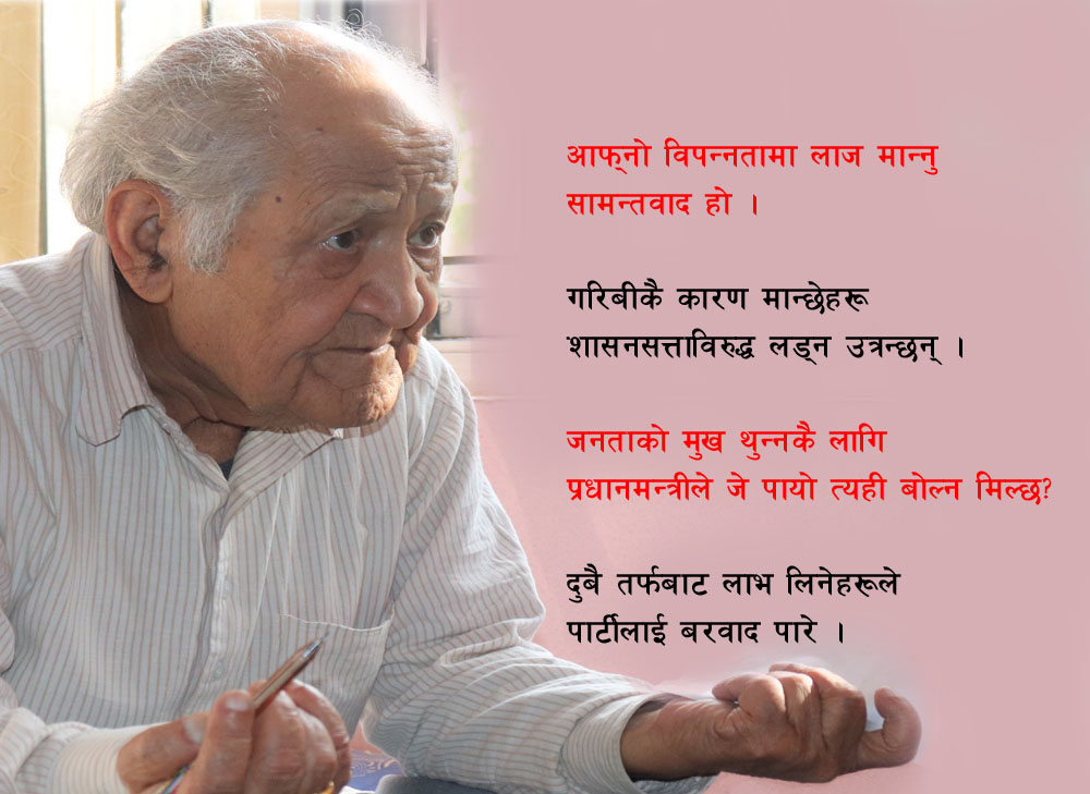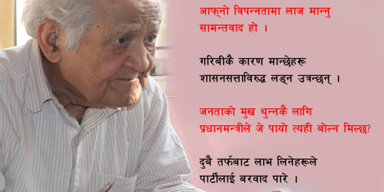 जनताको अवस्था के छ भनेर कुनचाहिँ सर्वसाधारणकोमा सोध्न गए प्रधानमन्त्री ? झापा गएका बेला केही मान्छेसँग उनले सोधे क्यार । तर अन्यत्रका जनतासँग त एक बचन पनि सोधेनन् । बरु उहाँ त जथाभावी बोलेर हिँड्नुहुन्छ । त्यसरी जनताको मुख थुन्नकै लागि जे पायो त्यही बोल्न पाइन्छ ? जनतालाई हेप्न र हेलाँ गर्न पाइन्छ ? प्रतिस्पर्धी र प्रतिपक्षहरू त सबै पार्टीभित्र हुन्छन् । पार्टीभित्रका प्रतिपक्षलाई पनि सम्मान गरेर चित्त बुझाउन सक्नुपर्छ पार्टीका समेत अध्यक्ष रहेका प्रधानमन्त्रीले ।