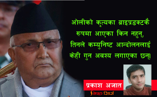 यति हुँदाहुँदै पनि, खड्प्रसाद ओलीलाई प्रधानमन्त्रीबाट बिदाइ गर्दैगर्दा, बाइप्रडक्टकै रूपमा सही, उनकै कारणले कतिपय सकारात्मक सन्देशहरू पनि सिर्जना हुन पुगेका छन्। खड्गप्रसाद ओलीको शक्ति र सत्ताको महत्वाकांक्षामा उत्पादन भएका त्यस्ता कतिपय ‘बाइप्रडक्ट योगदान’हरू छन्, जसले कम्युनिष्ट आन्दोलनलाई फाइदै पुर्याएको छ। हामीले त्यस कोणबाट पनि कतिपय लाभहरूलाई हेर्नुपर्ने हुन्छ :