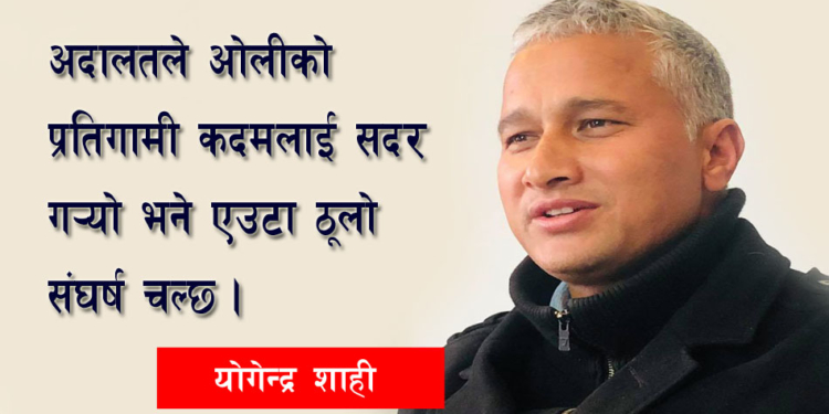 अब भने छिटो भन्दा छिटो न्यायिक संघर्ष, र त्यसमा पनि आम नागरिक देखि विभिन्न तप्काहरूलाई गोलबन्द गरेर साझा संघर्ष अगाडि बढ्नुपर्छ । त्यो संघर्ष गरिएन भने केपी ओलीले देशलाई अझै जटिलतातर्फ पुर्याउने खतरा हुन्छ ।